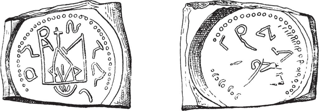 Мал. 5. Ганчарнае кляймо з Магілёва (паводле: Марзалюк І. Магілёў у XII–XVIII стст. Людзі і рэчы. Мінск, 1998. Мал. 26-1).