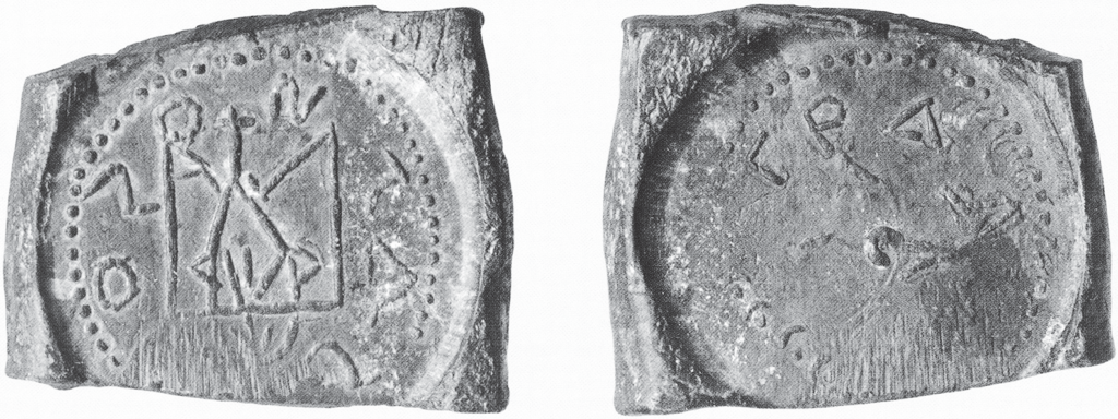 [39] У прыватнасці, нельга выключаць пераробку з “грамота” ў “γράμματα”. Зыходнае О тады было б большых памераў і бліжэй да краю. У пашкоджанай вобласці ёсць штрыхі, якія пры жаданні можна прыняць за яго рэшткі. Магчыма, што і само пашкоджанне было выклікана жаданнем падправіць адбітак, хоць упэўнена сцвярджаць нельга – магчыма, гэта была спроба сарваць пячатку.