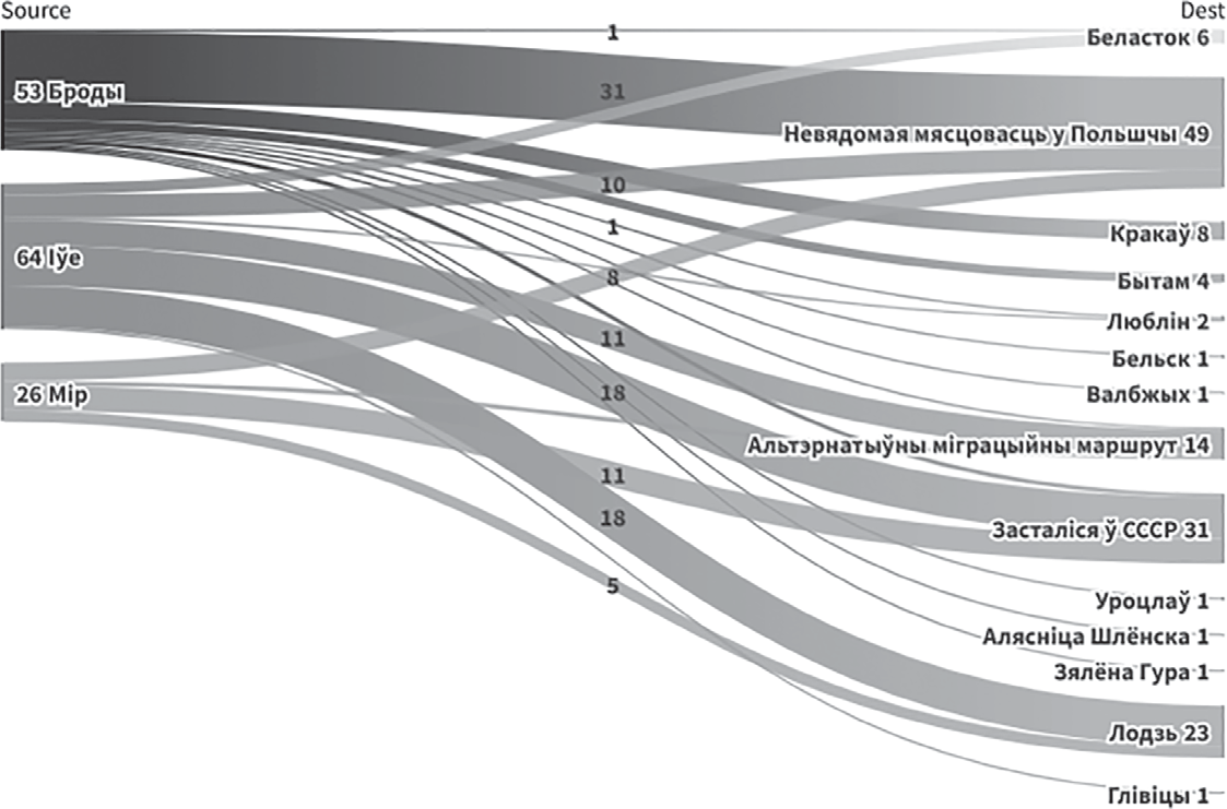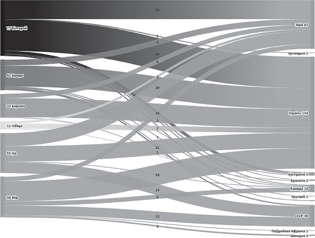 Мал. 2. Выніковыя месцы жыхарства яўрэйскіх мігрантаў.